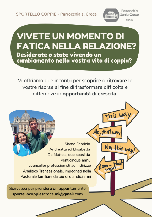 Scriveteci per prendere un appuntamento: sportellocoppiescroce.mi @ gmail.com (tutto attaccato).