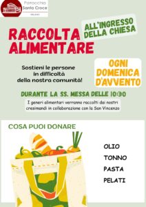 Vieni a Messa con olio, tonno, pasta, pelati!